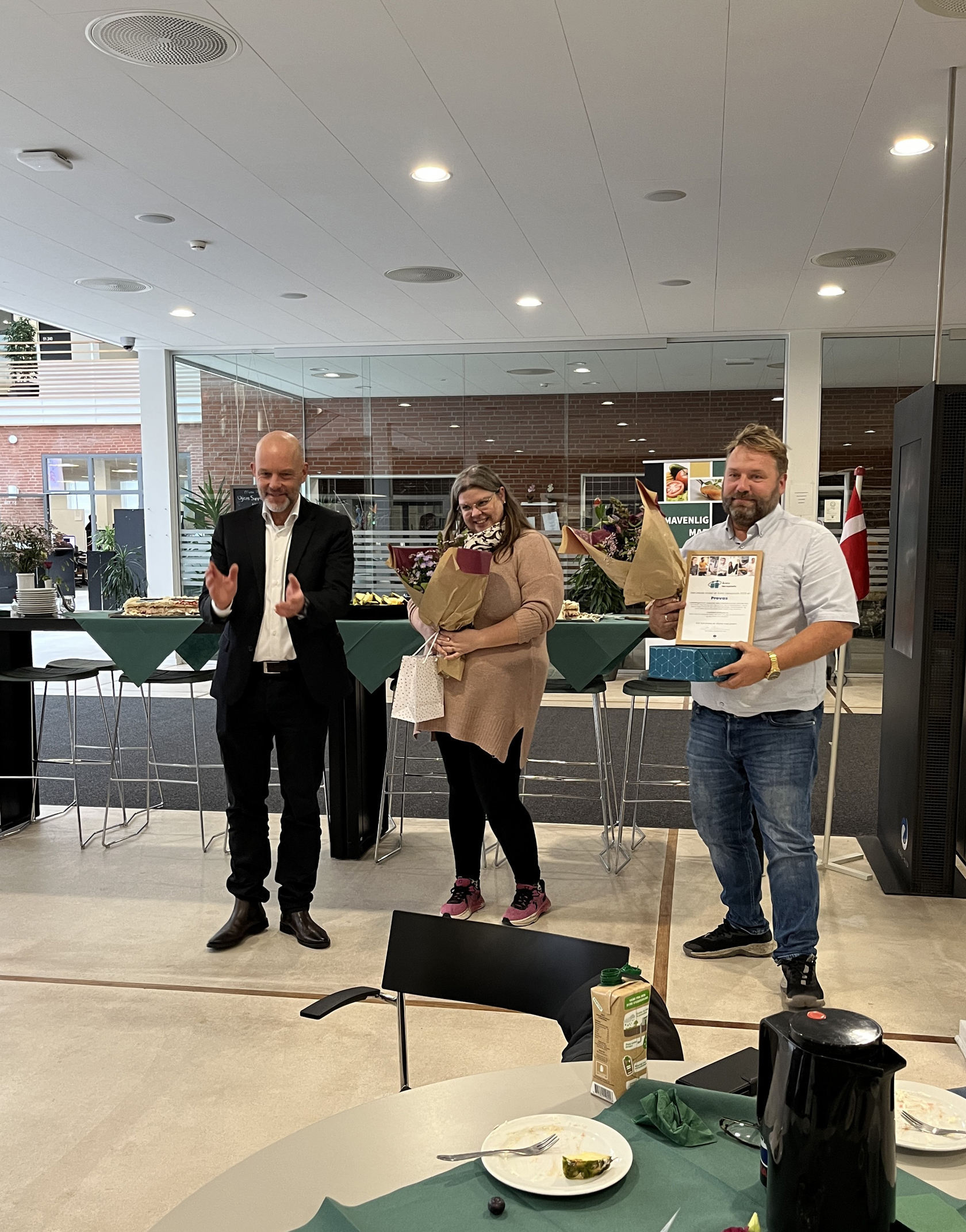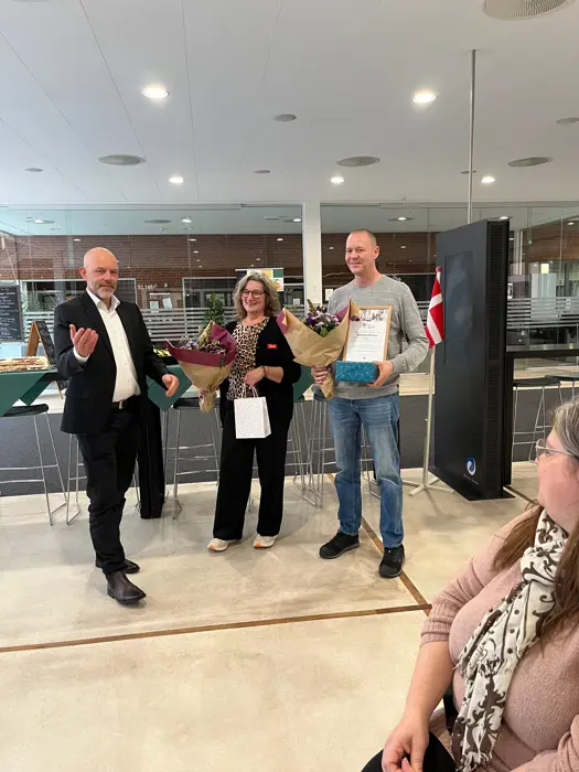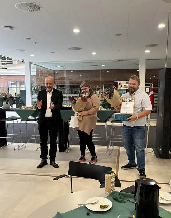 Der blev også sendt en særlig tak til de to elever, Charlotte og Frederik, for deres flotte indstillinger og deres mod på at sætte ord på, hvad der gør en læreplads helt særlig.